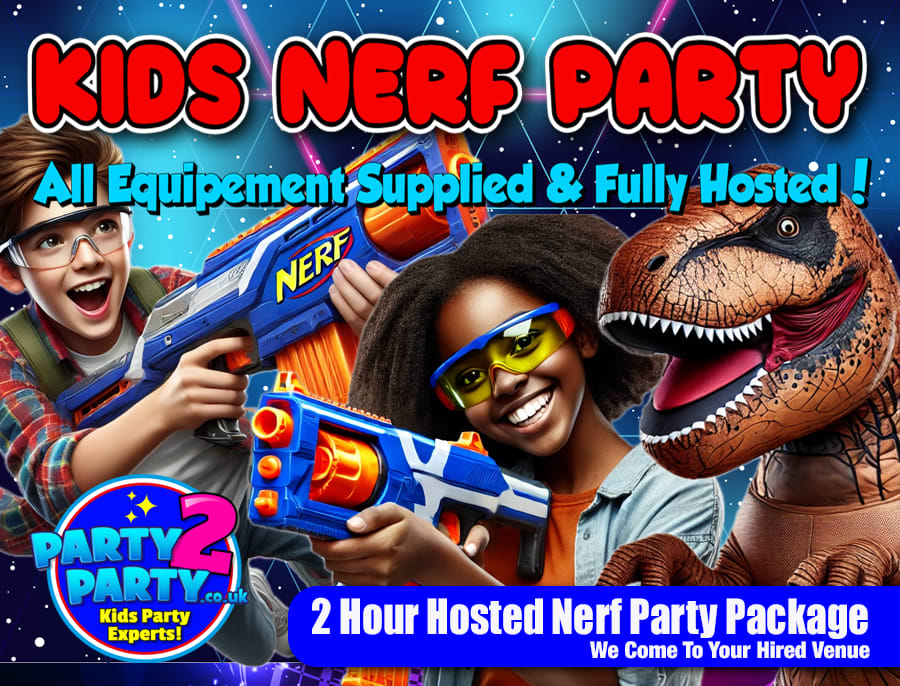Fully Hosted 2 Hour Nerf Themed Battle Party Hire in Nottingham & East Midlands. - Nerf Bouncy Castle NOT included in this package.